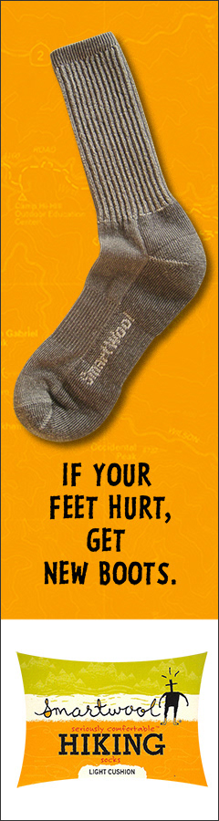 A humorous, direct approach supports the brand in this web banner. Smartwool also makes socks for running, cycling, skiing, and other activities. This execution can be easily adapted to those markets.